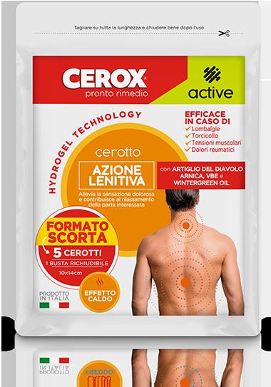 Hydrogel Technology Effetto Caldo DescrizioneAllevia la sensazione dolorosa e contribuisce al rilassamento della parte interessataCerox® Active Cerotto Azione Lenitiva è indicato...