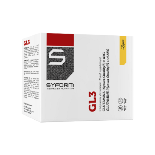 GL3 Limone Descrizione Integratore alimentare a base di glutamina. Ingredienti L-glutamina (Kyowa Quality), maltodestrine, N-acetil L-glutamina, L-glutamina alfachetoglutarato, aroma; agente...