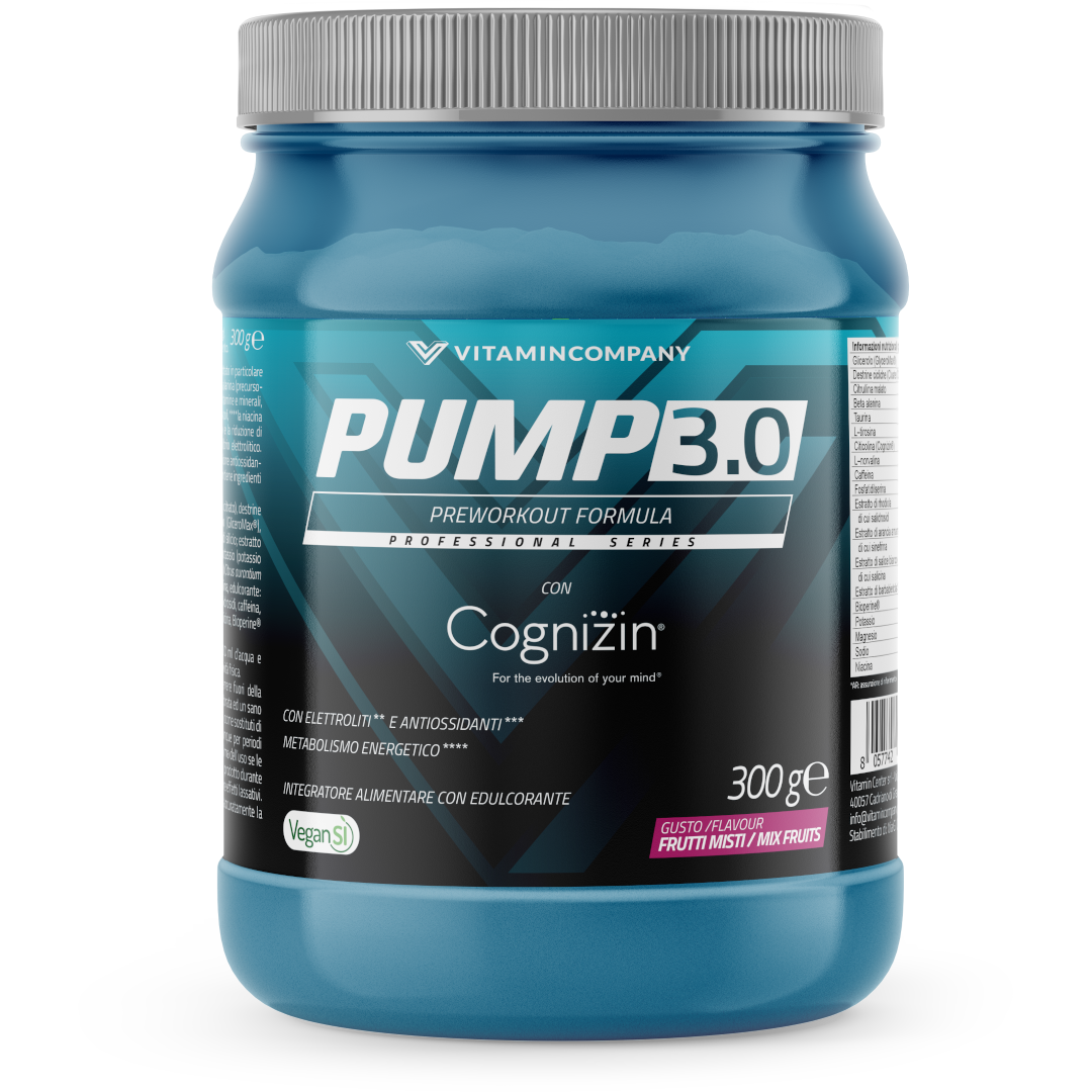 Pump 3.0 di VitaminCompany è un integratore pre-workout formulato per supportare le prestazioni fisiche e mentali durante gli allenamenti intensi....