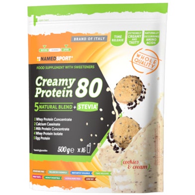 Creamy Protein 80 gusto Cookies & Cream Descrizione Miscela a base di 5 fonti naturali di proteine a diversa velocità...