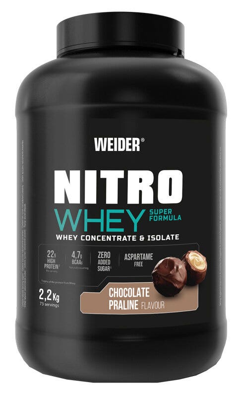 WEIDER NITRO WHEY SUPER FORMULA CHOCOLATE PRALINE FLAVOUR Descrizione Integratore alimentare in polvere per la preparazione di una bevanda a...