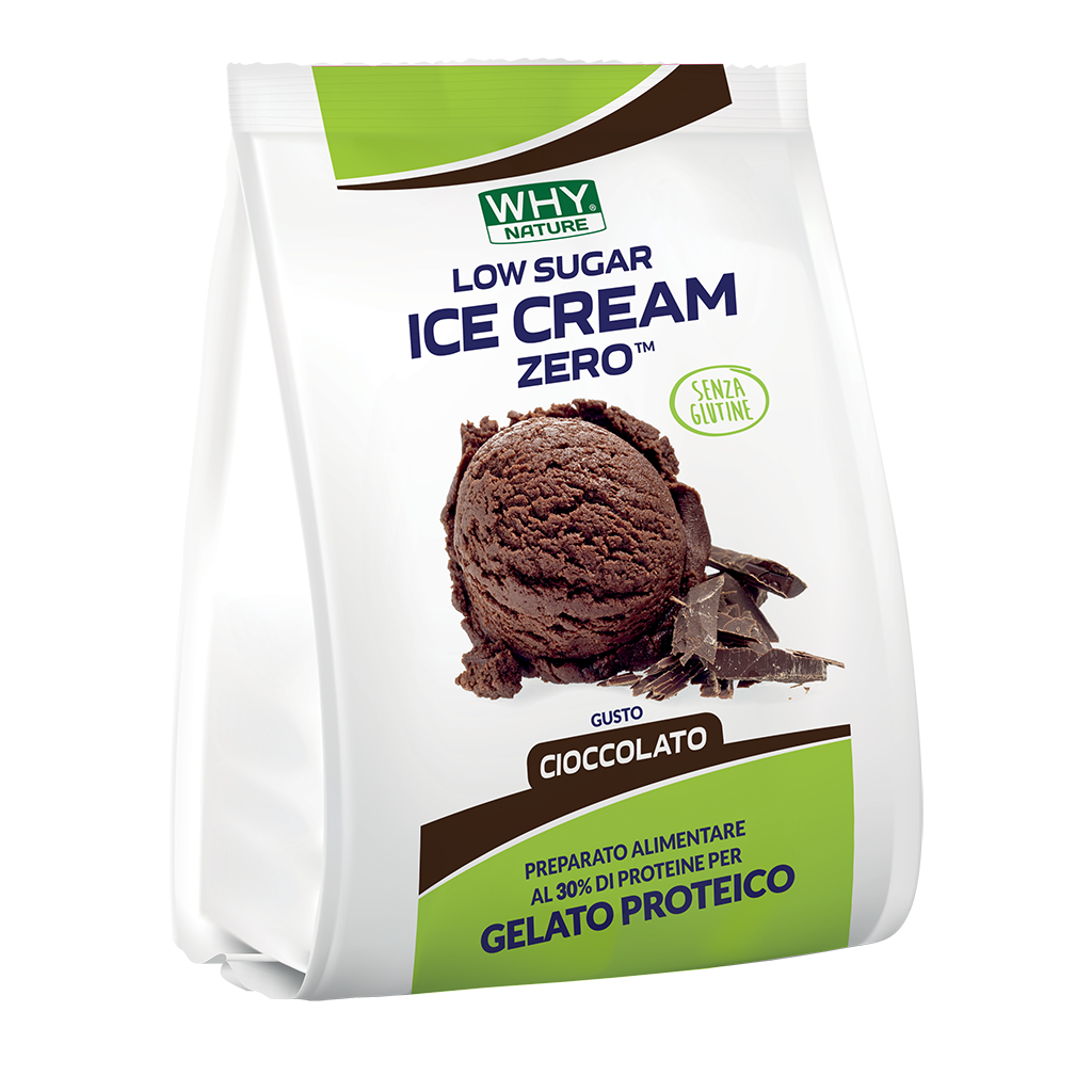 WHY NATURE ICE CREAM ZERO CIOCCOLATO DescrizionePreparato per gelato proteico in polvere a basso contenuto di zuccheri. Per un gelato...