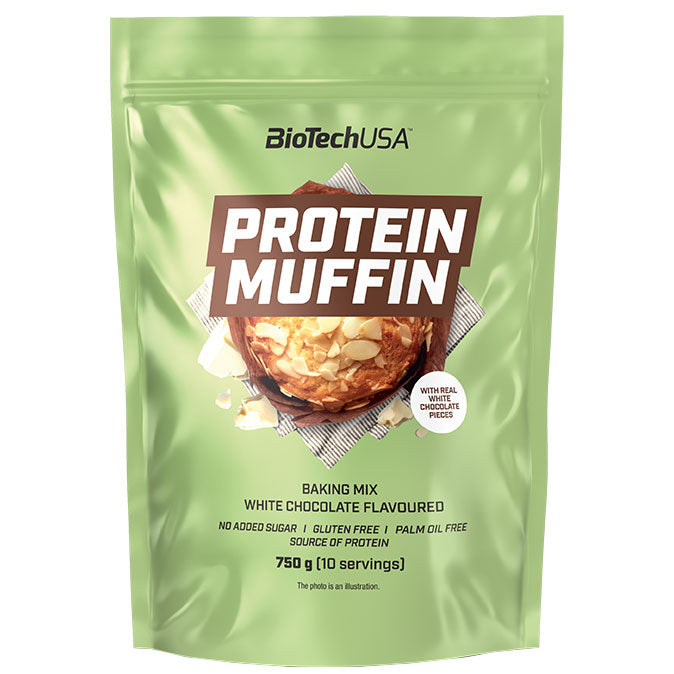 Preparato in polvere per muffin al gusto di cioccolato bianco con proteine idrolizzate, proteine del siero del latte ed edulcorante....