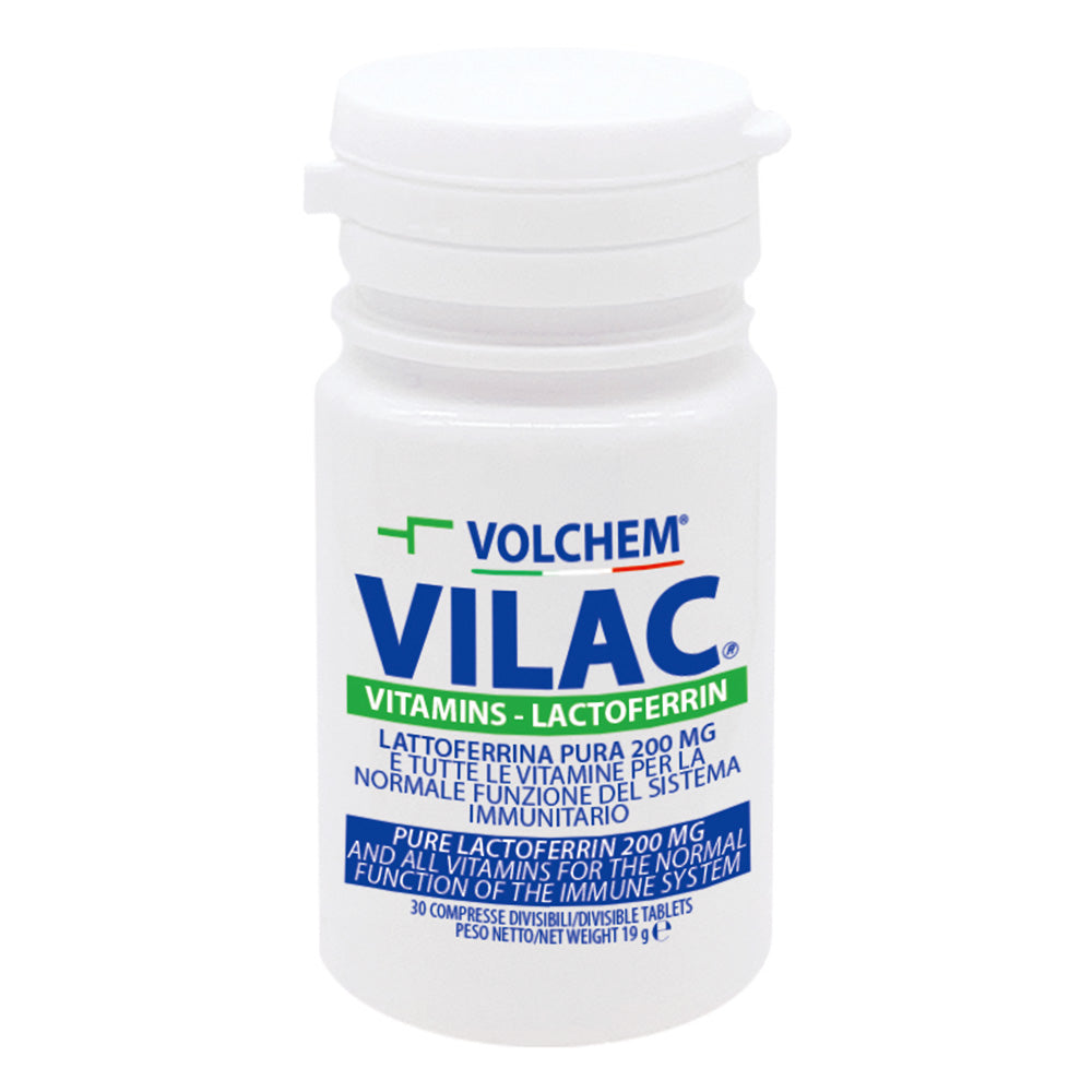 Vilac è un integratore alimentare a base di lattoferrina pura (200 mg) e tutte le vitamine (A, B6, B12, C,...