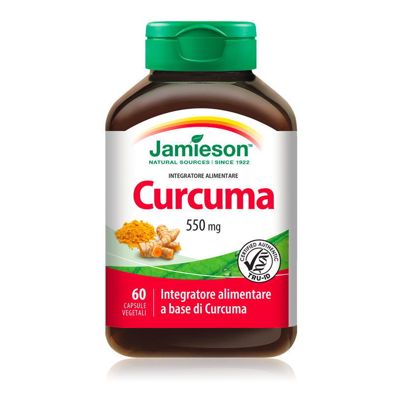 Jamieson Curcuma 550 mg Descrizione Integratore alimentare di curcuma (Curcuma longa L., rizoma). Ogni capsula di Curcuma 550 mg Jamieson...