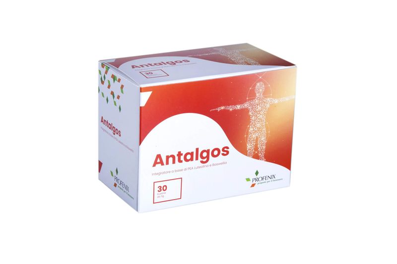 Antalgos Descrizione Integratore avente effetti nutritivi fisiologici. Integratore alimentare in bustine composto da diversi elementi nutrizionali tra cui la boswellia...