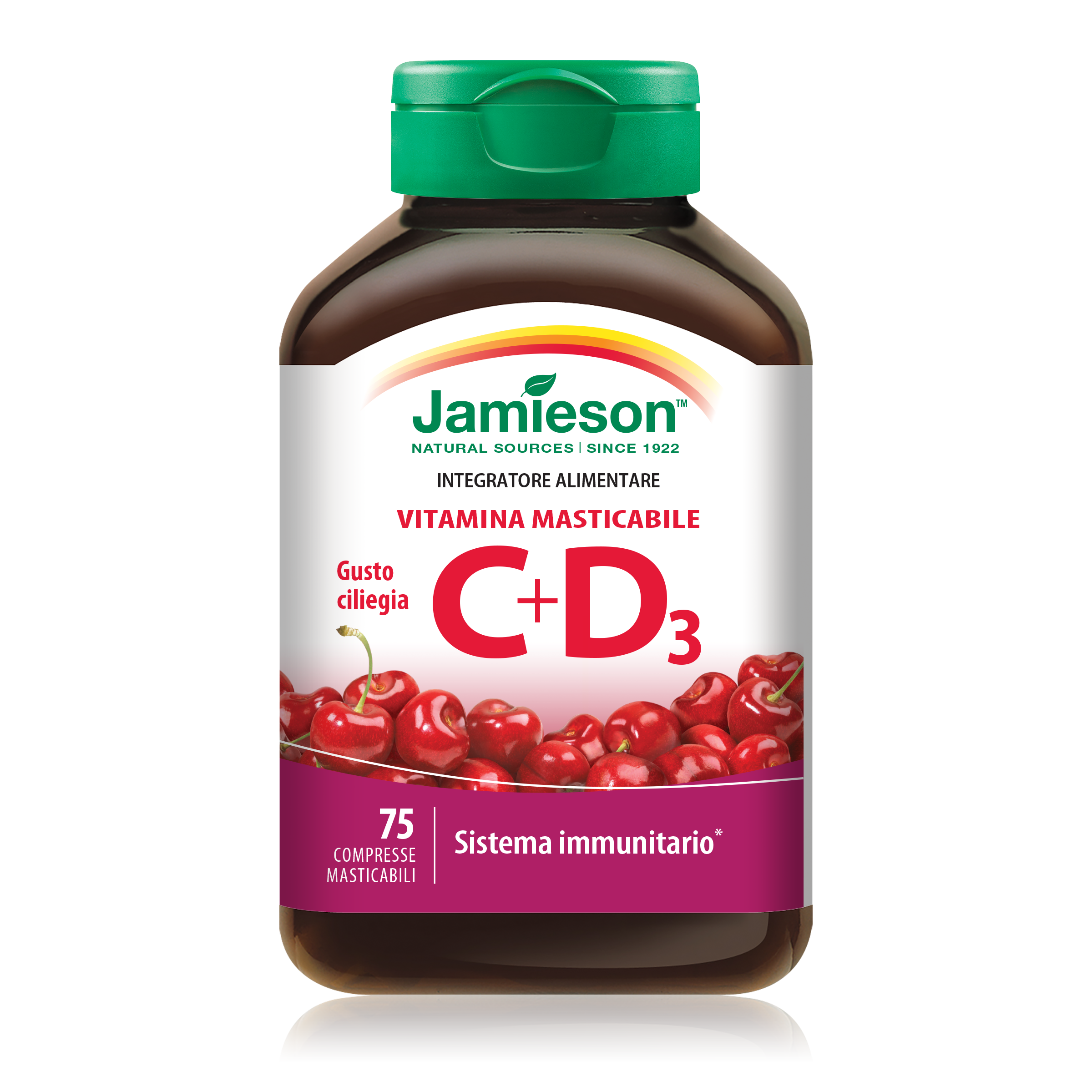 Jamieson VITAMINA C + D3Ciliegia Descrizione Integratore alimentare di vitamina C e vitamina D. La vitamina C è utile per...