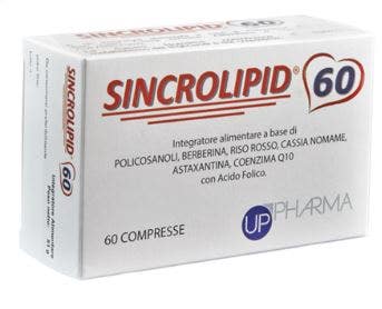 SINCROLIPID Descrizione Integratore alimentare a base di policosanoli, berberina, riso rosso, cassia nomame, astaxantina e coenzima Q10. Con acido folico....