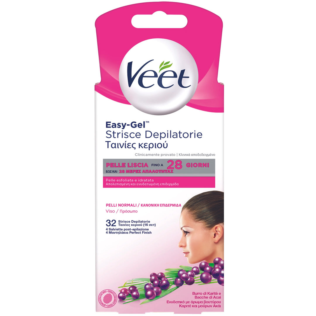 Strisce depilatorie per il viso con formula in gel Easy-Gel™: Aderisce ai peli più corti, non alla pelle Rimuove i...