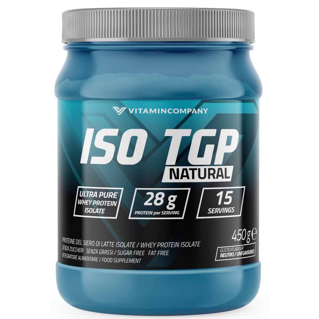 Iso TGP Natural di Vitamincompany è un integratore alimentare a base di proteine isolate del siero di latte (WPI) Volactive®...
