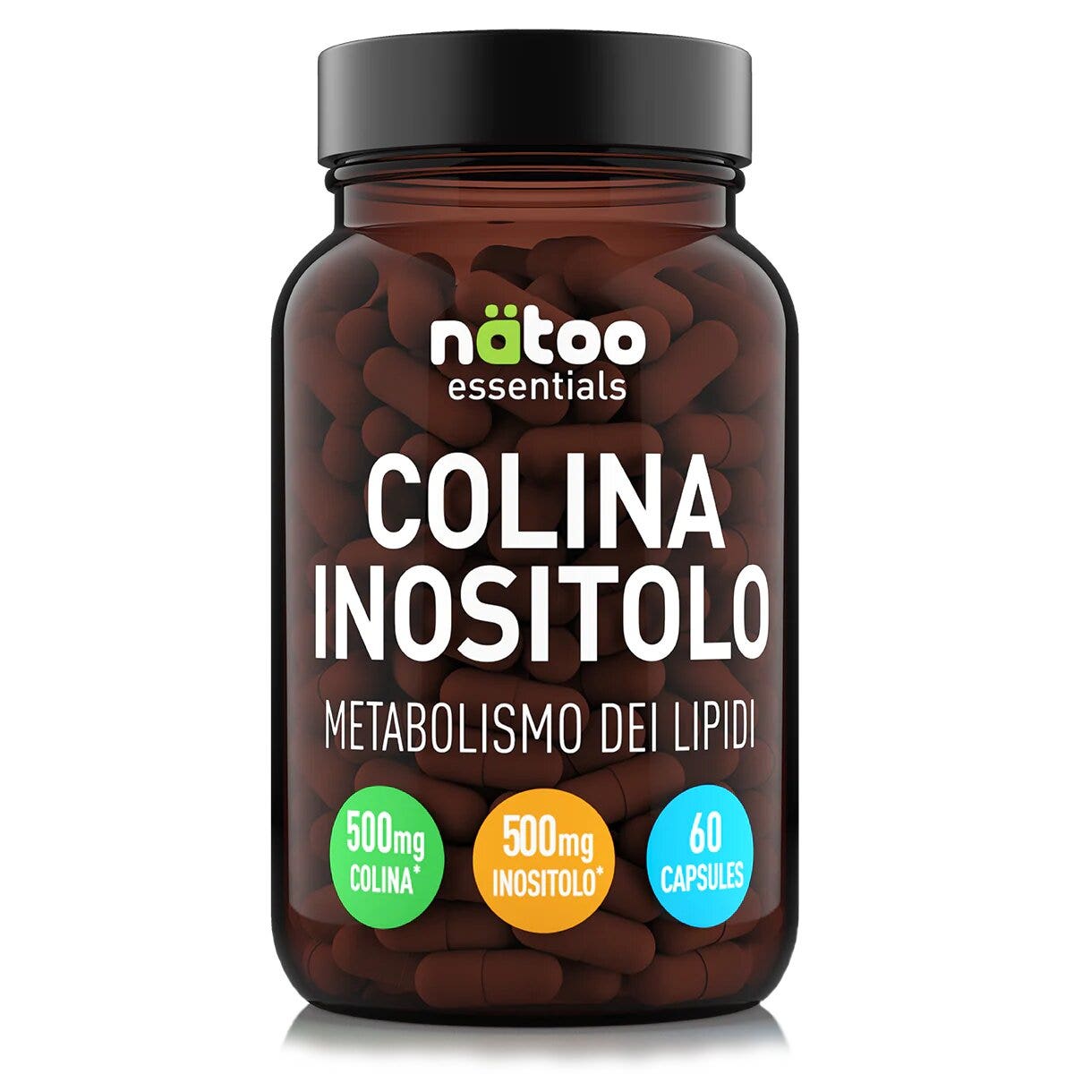 - DOSAGGIO EFFICACE, una dose di 2 capsule di Natoo Colina Inositolo apporta un dosaggio efficace dei due nutrienti, 500mg di Colina Bitartrato e 500mg di Inositolo.